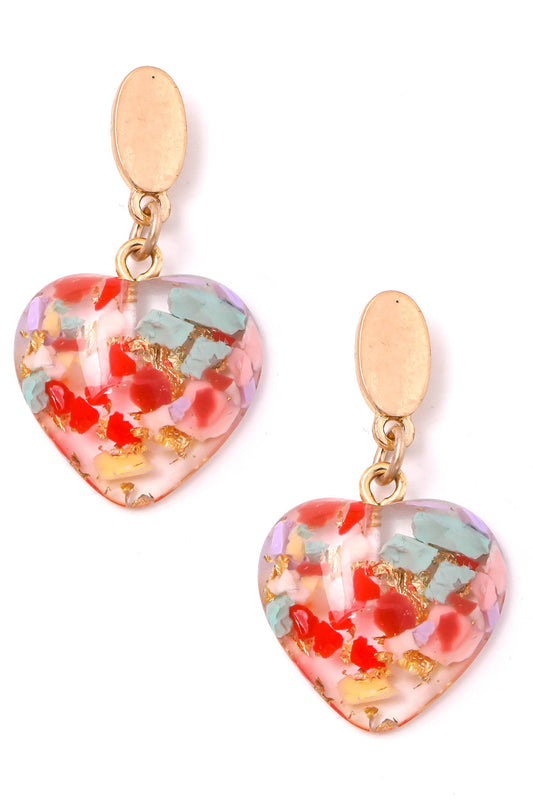 Resin Heart Dangle Drop Earrings