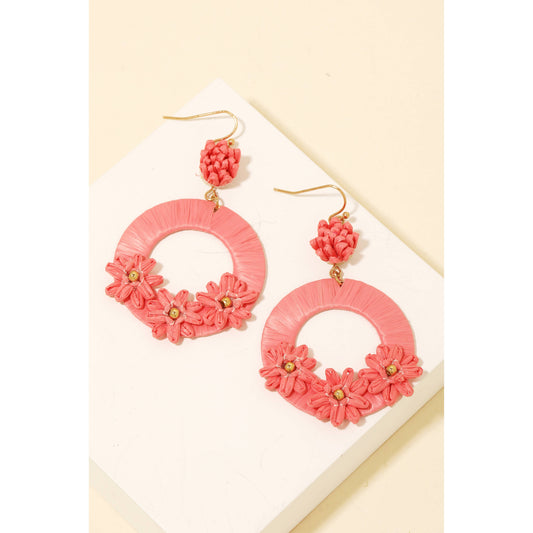 Raffia Flower Charm Dangle Earrings