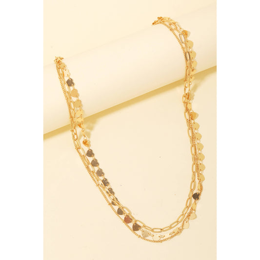 Flat Metallic Heart Chains Layered Necklace