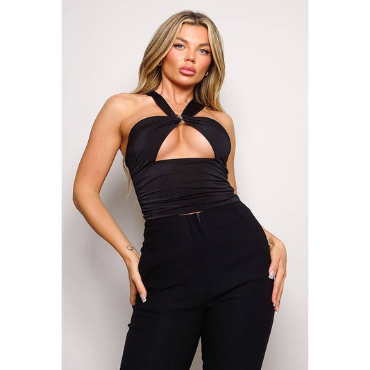 LIVIN BETTER RING HALTER CROP TOP