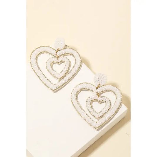 Layered Seed Beaded Hearts Dangle Earrings