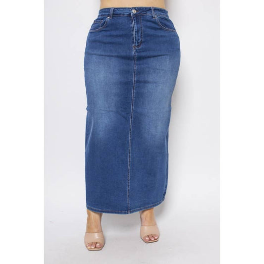 PLUS SIZE DENIM MIDI SKIRT